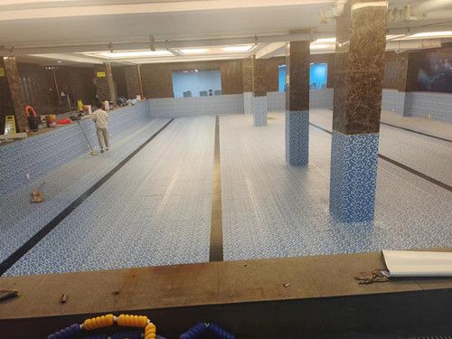 浙江室內(nèi)游泳池防水膠膜施工完畢,本項(xiàng)目為新建鋼結(jié)構(gòu)拼裝泳池,采用1.5mm顆粒防滑游泳池防水膠膜,安裝鋪設(shè)使用干鋪工藝,四周采用卡槽固定,整體形成密封結(jié)構(gòu),達(dá)到防水不漏水,效果如下: